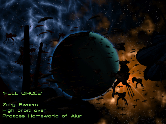 在这个星球上可以看见梦幻般的天景。不过这个星球上的大部分地表却象遥远的Zerus星一样布满地狱般的溶岩。怪不得Zerg异形们如此喜欢这里。(也许有家的感觉)