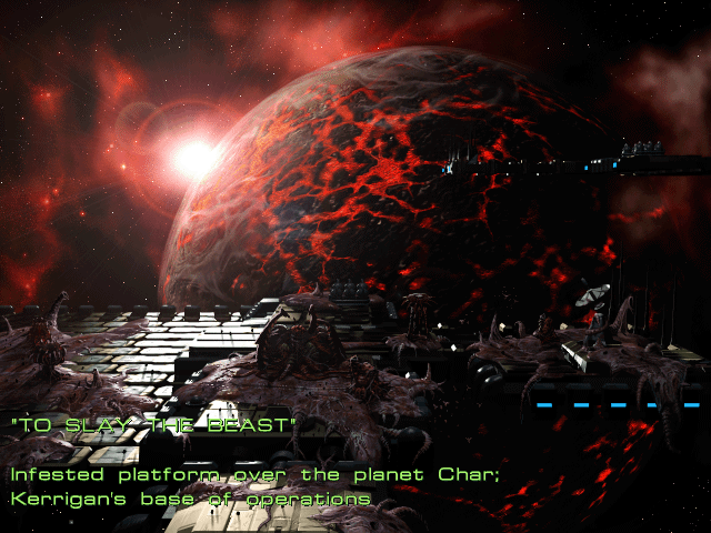 那里是一个噩梦,那里是地狱! 没有活着的人去过那里,只知道它靠近炎热的银河系中心,整个星球为灰烬所覆盖 ,四处肆虐的火焰暴风使得行星非常不稳定。极其恶劣的环境使得大部分形态的生命无法在这里生存。然而这里却诞生了蠕虫般微小却有极强生命力的Zerg!