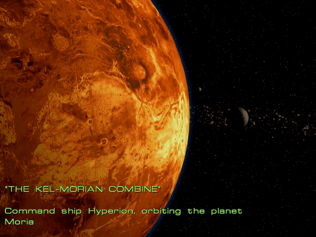 Kel-Morian双子星是由Kel星和Moria两颗行星组成。由于两颗行星距离很近,所以两颗星相互受对方引力的影响。这其中红色的Moria(莫瑞亚)行星是附近星系里最大的水晶矿产地。有着异常丰富的资源。先前发生意外的四艘殖民巨舰中的亚哥号就是降落在这里的。